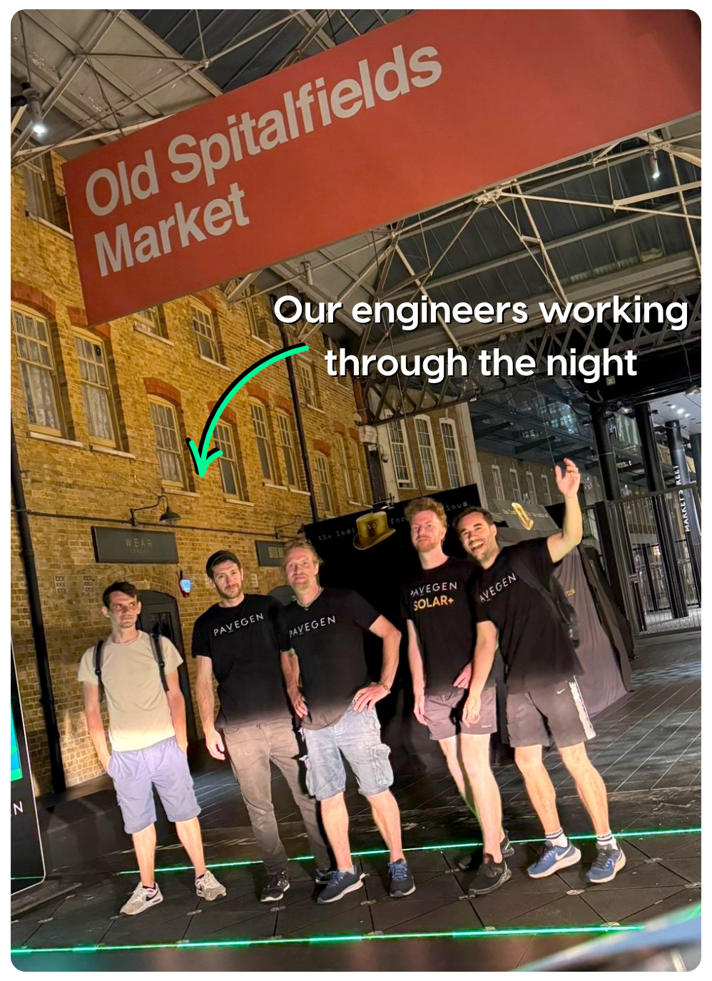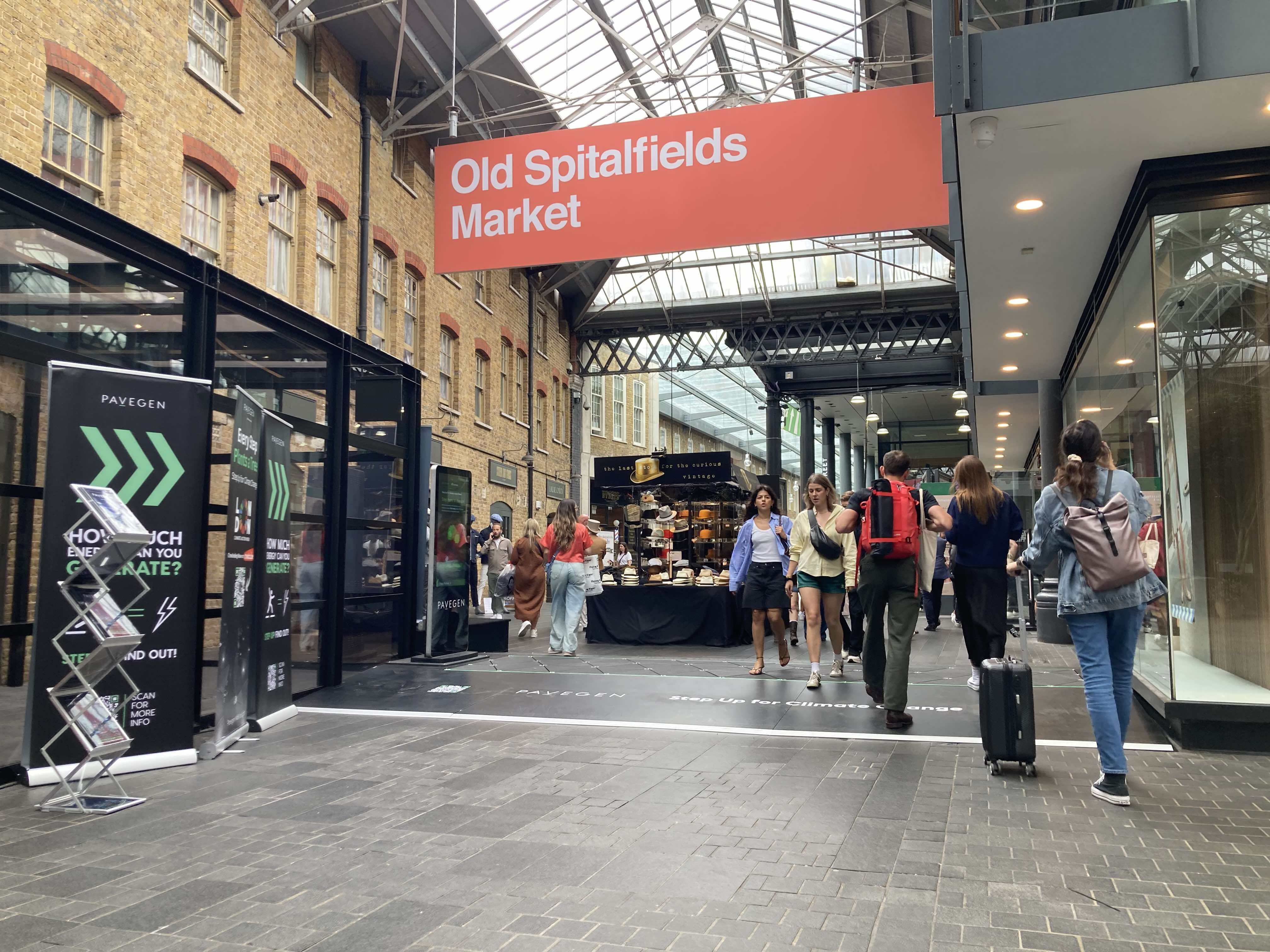 In July 2025, Pavegen brought its interactive installation to Old Spitalfields Market - one of London’s most historic and character-rich destinations. With 180,000 people passing through every week, the market offered a rare opportunity to connect with a diverse community of shoppers, city workers, tourists, and local residents. The aim was simple: make sustainability feel human, intuitive, and woven into everyday life.